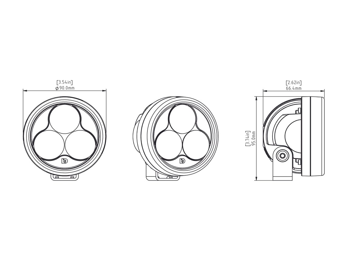 • Pod Size: 3.5? (90mm) Round x 2.62? (66mm) Deep