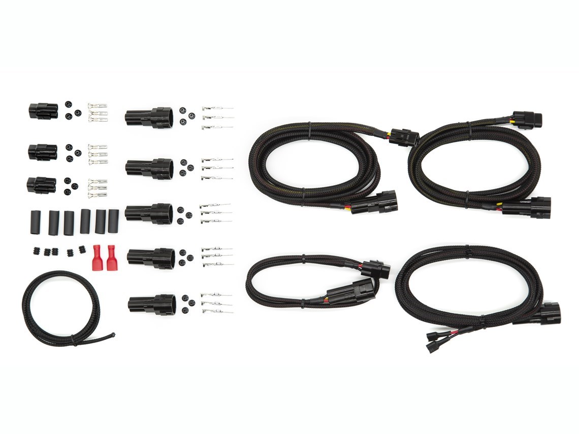 The HEX ezCAN Extension Kit provides you with everything that you need to connect your front auxiliary lights, brake lights and horn to the ezCAN, with additional connectors to facilitate other accessories. In addition, the kit also provides: