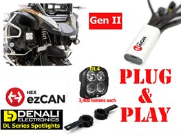 Ride safer and longer with a HEX ezCan and auxiliary LED Spotlight lighting kit.