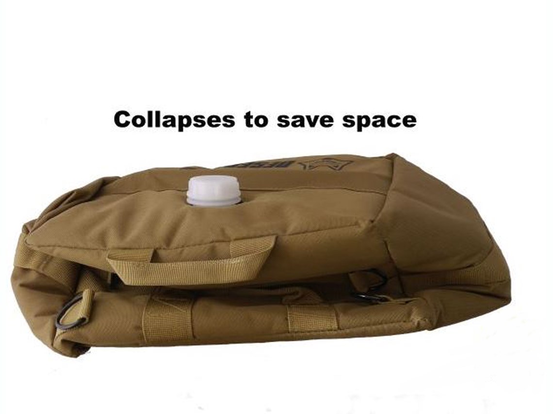 The Desert Fox 20 litre flexible motorcycle fuel bladder easily folds away when not required and includes a handy spout for re-fuelling.