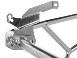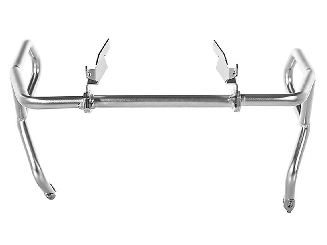 Despite the impressive tube diameter, the crash bar is positioned as closely as possible and symmetrically to the vehicle axis. It has practically no effect on the lean angles or ground clearance. The crash bar extension looks as if it were a part of the motorbike.