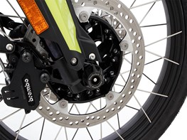 Effective, double protection against impact and grinding damage to the fork, wheel axle and brake system
