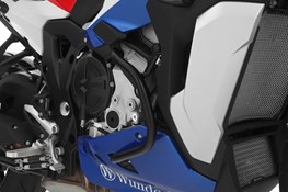 The Wunderlich two-part engine protection bar for the S1000XR offers maximum protection and maximum lean angle with minimum weight. With its slim shape, it fits harmoniously into the design layout and the lines of the new XR.