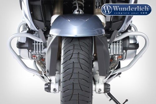 Altogether six mounting points absorb all impact forces securely, causing the engine protection bar to only absorb kinetic energy without damaging other components. The leverage forces are distributed across all six mounting points in the case of a crash. The central mount provides uniform distribution and functions as a pivotal point in case of a fall.