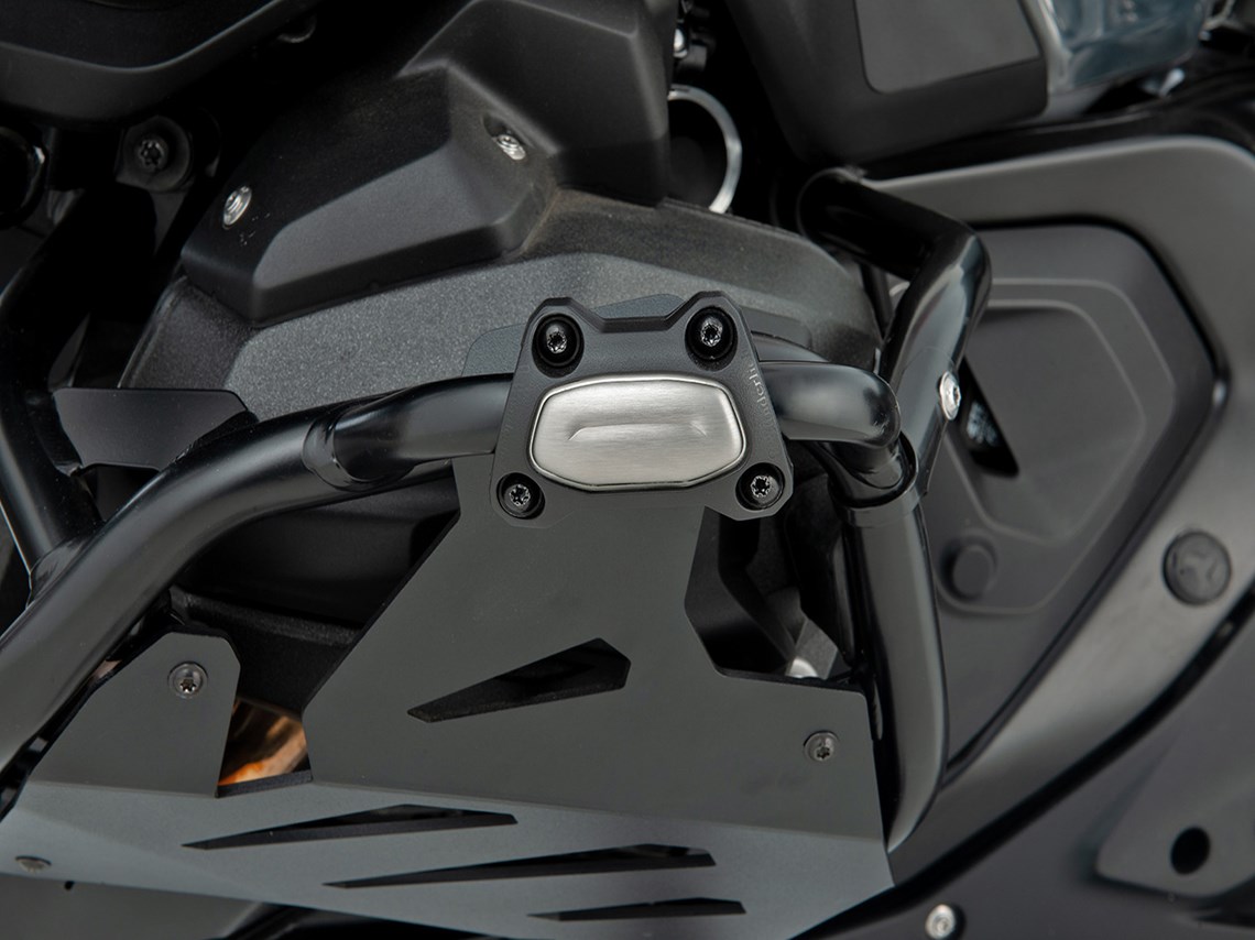 •The side of the protector facing the motorcycle is only five millimetres thick, so it can be easily mounted on all crash bars with a tube diameter of 25 mm, even in tight installation situations.