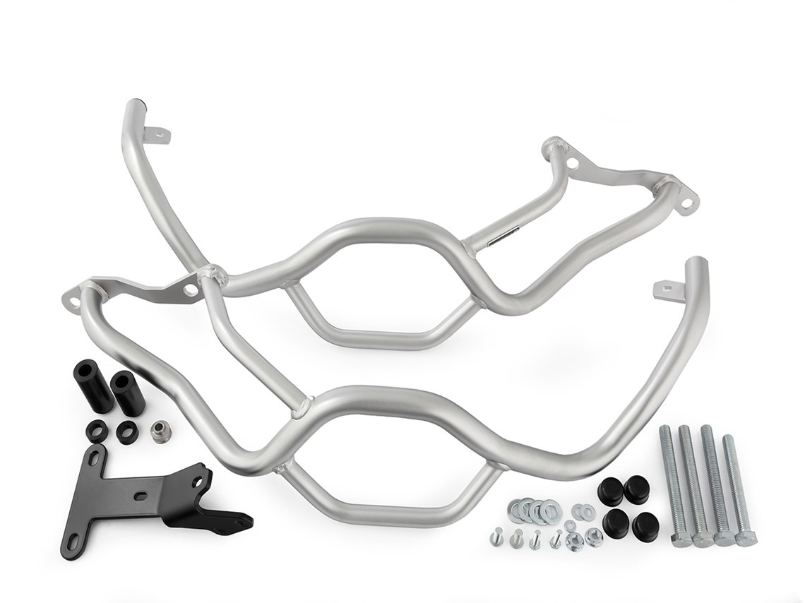 This tank protection bar in combination with the engine protection bar protects reliably the fairing of the F900 Adventure against damage. Due to the high intake, the motorcycle will not tip over in the event of a fall. This also prevents from further damage on the stem. The tank protection bar perfectly underlines the optics and design of the 850. The driver's freedom of movement is not affected.