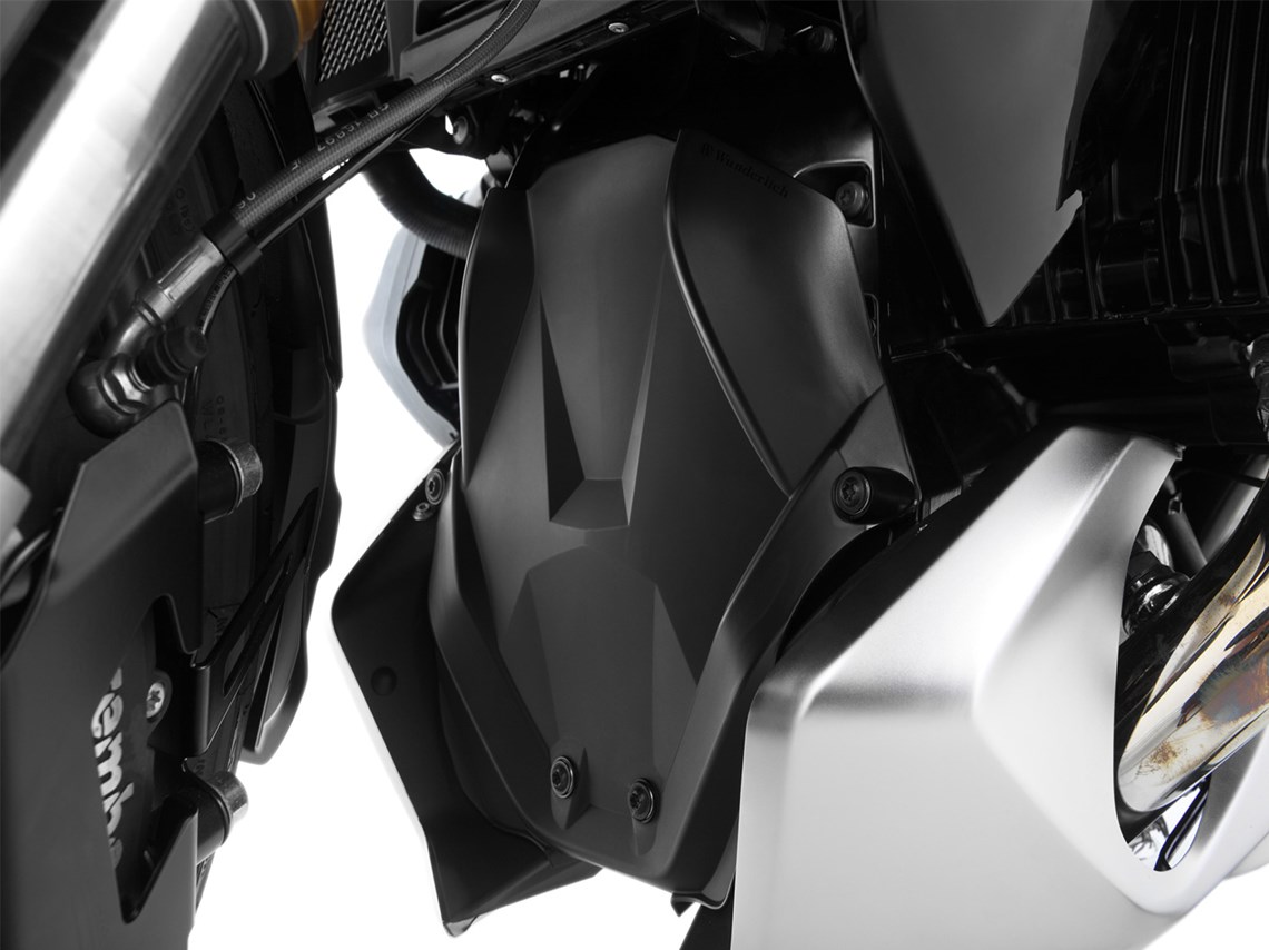 The engine cover has to handle stone impacts, kicked up spray and road dirt thrown up by the front wheel as well as the mayhem on the motorway. To protect the engine Wunderlich have developed and carefully designed our contour-fit engine protection cover using tough, impact-resistant and durable plastic. The component form additionally provides mechanical stability at a low weight. The engine protection cover is constructively integrated via the 4-point attachment and also upgrades the engine design.