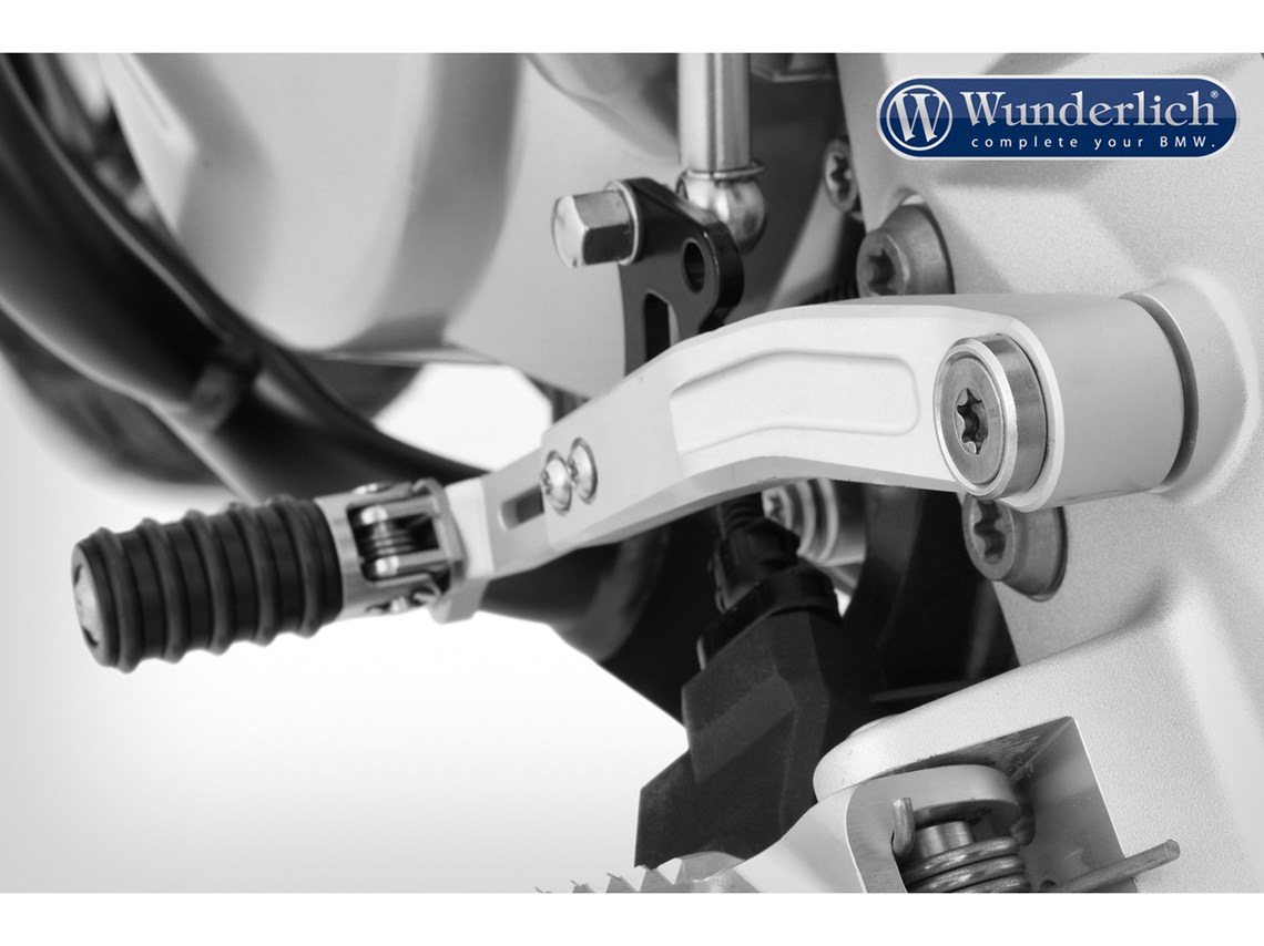 A clever all-round alternative to the oversensitive, impractical and optically plain original. The gear shift lever can now be adapted to all shoe sizes and riding habits and changing gears on the GS becomes child’s play thanks to the roller-mounted shift lever.