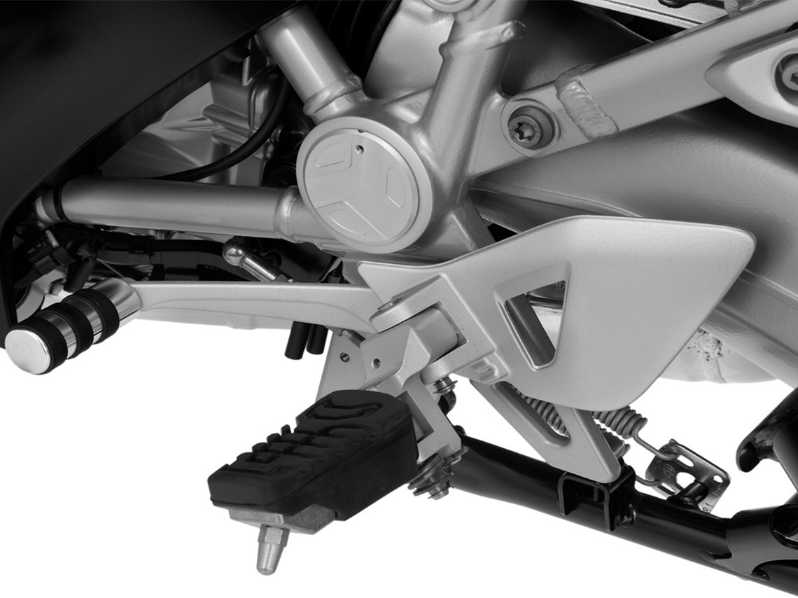 30 mm (1.18”) down and slightly forwards. The change in footrest position will increase the knee and hip angle, a benefit especially when touring. Better blood circulation and less cramps will make a full-to-empty tank ride much more enjoyable.