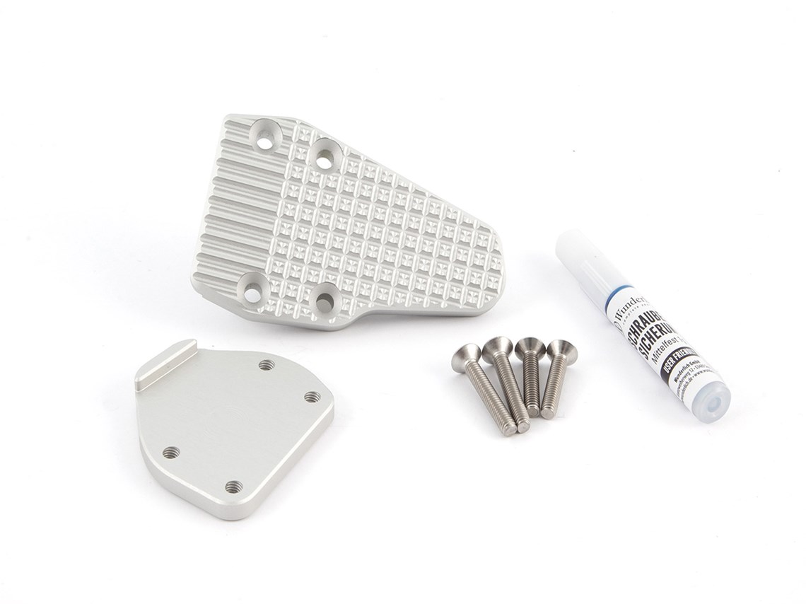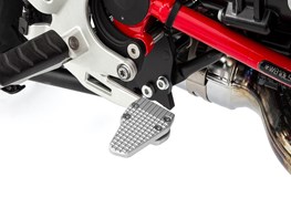 In its original form the footrest area is unfortunately rather small, which all too often presents a safety risk. If your boot is resting too far towards the edge of the footrest, you have to bend it awkwardly to reach the brake. With this lever enlarger installed, a wet boot slipping off the lever tip or treading on thin air belongs in the past.
