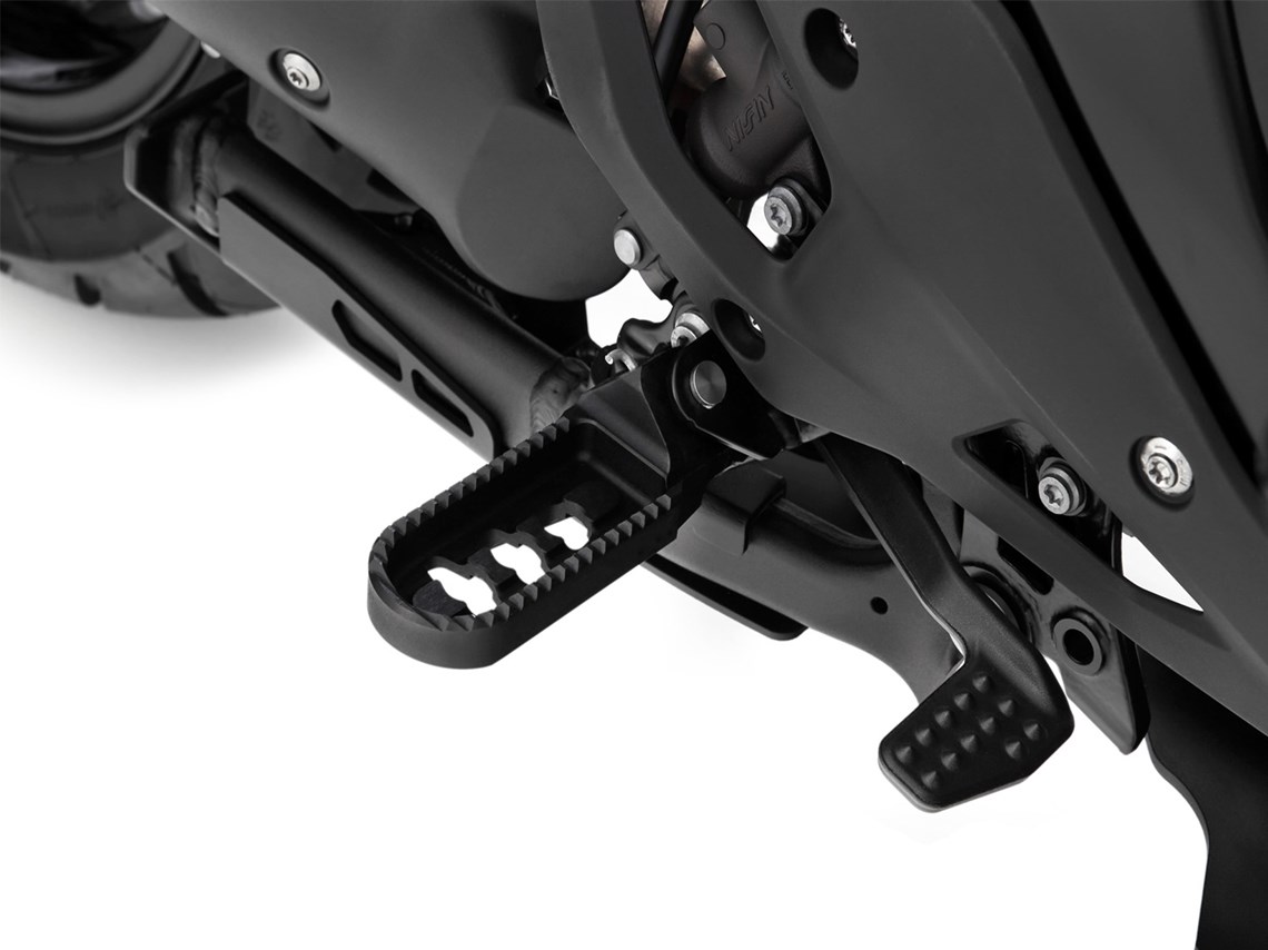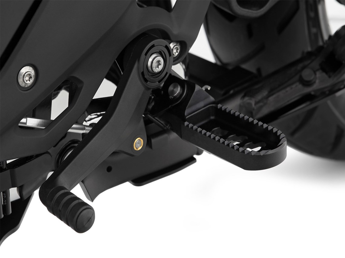Cornering clearance is not affected, even though the footrest is lowered by 25 mm (1”).