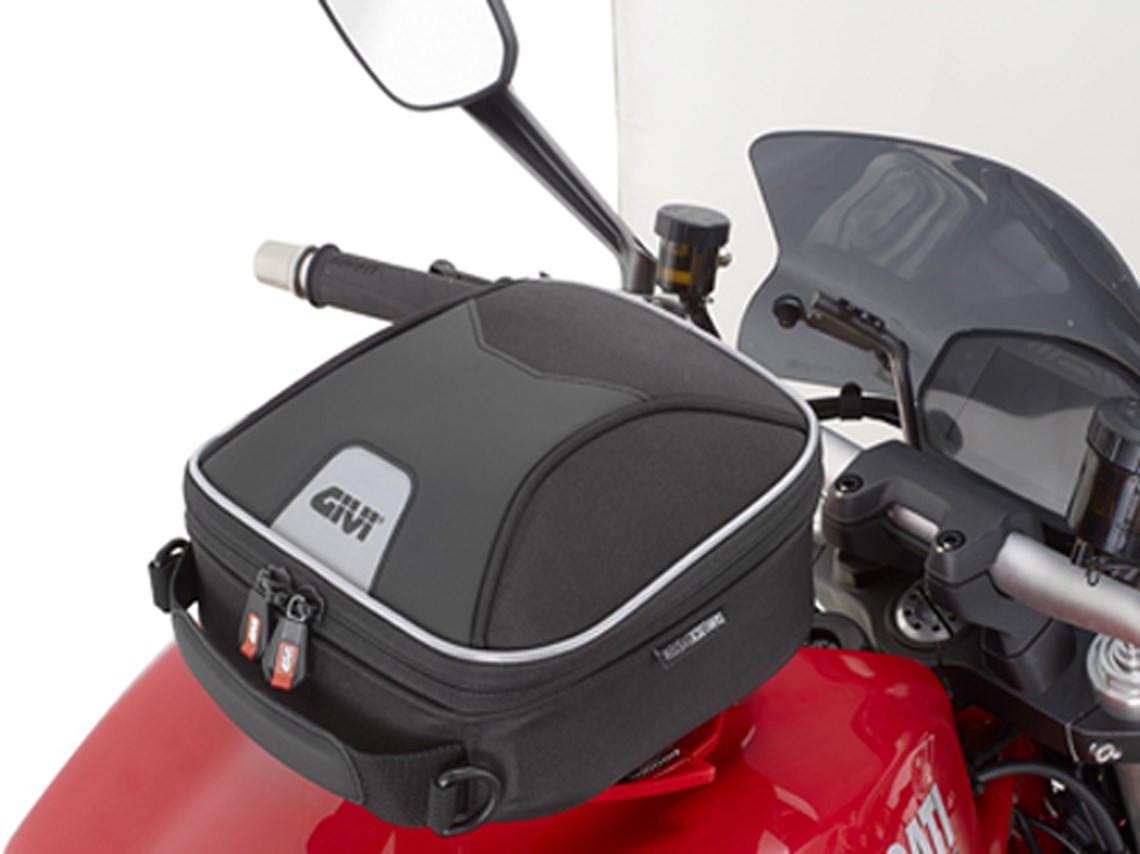 The Givi XS319 is a super compact semi rigid tank bag using the convenient Tanklock rapid fitting system to the tank lid.