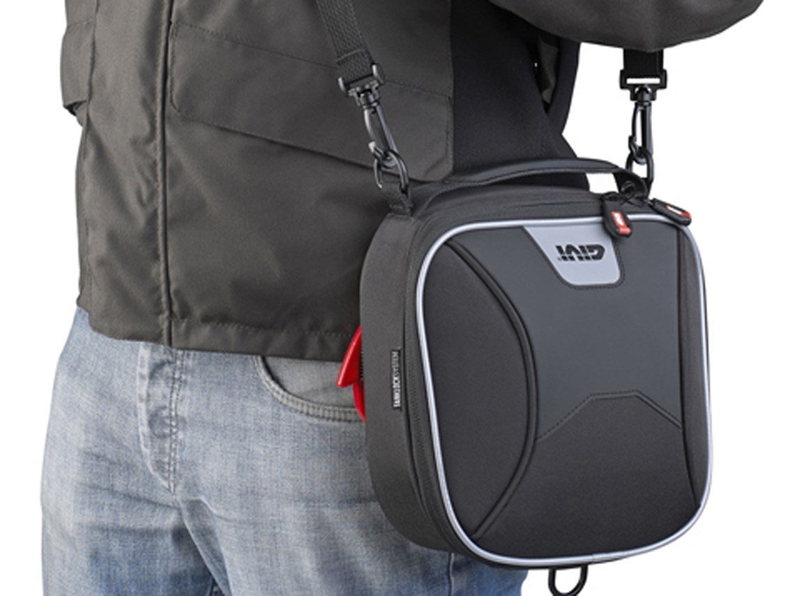 Suitable for all bike it adds 3 litres of storage space for smaller objects and once at your destination it becomes a convenient bag thanks to the integral handle and detachable shoulder strap.