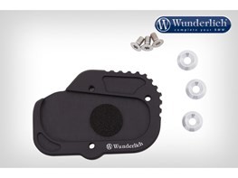 Precision machined enlarger plate is manufactured from 8mm thick aluminium alloy. The shape of the side stand enlarger is designed so that the stand will still fold away as before, but the area of the stand is INCREASED BY 100%.