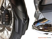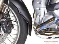 “Not only is it simpler to install, it looks beautifully integrated with the styling of the new GS and is transferable to another bike without leaving disfiguring holes behind, a benefit for resale value”. The Avant Fender Extender fits over the top of the fender and securely engages the tip of the stock GS LC front mudguard with a unique molded-in shoe. Two compression clamps grip the underside of the GS LC front mudguard on both sides, drawn tight with T25 Torx Head screws. The characteristic flared wing shape widens the splash coverage area without looking wide.
