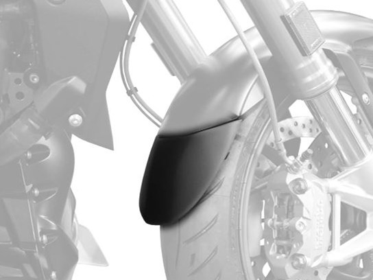 A conventional mudguard extender cannot be fitted to the flimsy front mudguard fitted to the 1200R LC and 1200RS LC and R1250R/1250RS. The front mudguard is simply too flexible and not a sufficiently stable anchor for mounting a mudguard extender.