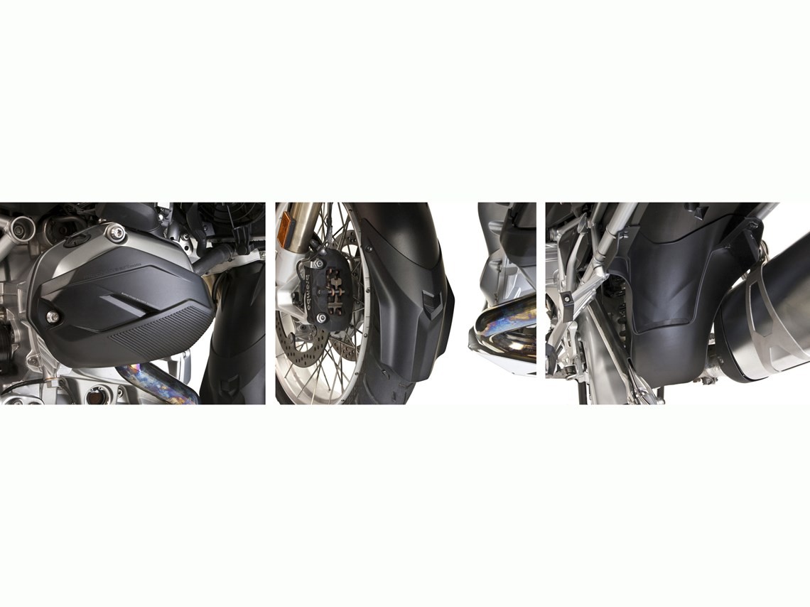 “Not only is it simpler to install, it looks beautifully integrated with the styling of the new GS and is transferable to another bike without leaving disfiguring holes behind, a benefit for resale value”. The Avant Fender Extender fits over the top of the fender and securely engages the tip of the stock GS LC front mudguard with a unique moulded-in shoe. Two compre