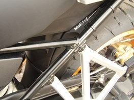 BMW have provided a minimal rear mudguard for the liquid cooled models but it is insufficiently long and wide to capture mud and water spray thrown forward onto the suspension and to the sides onto riders legs. This new MudSling® increases the surface area to each side by up to 3, and downwards by a full 7 to cover and protect the outside of the Paralever arm.