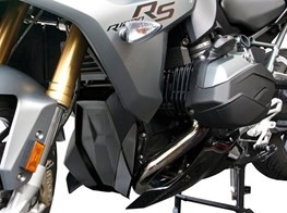 The Avant Guard is a front end stone and splash guard that protects the painted engine and exhaust headers of the liquid-cooled BMW R1200R/RS from serious and costly abrasion damage. The Avant Guard is a new kind of protection product designed to reflect these bikes distinctive styling while taking over the function of a front mudguard extender.