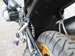 BMW have provided a minimal rear mudguard for the liquid cooled models but it is insufficiently long and wide to capture mud and water spray thrown forward onto the suspension and to the sides onto riders legs. This new MudSling® increases the surface area to each side by up to 3, and downwards by a full 7 to cover and protect the outside of the paralever arm.
