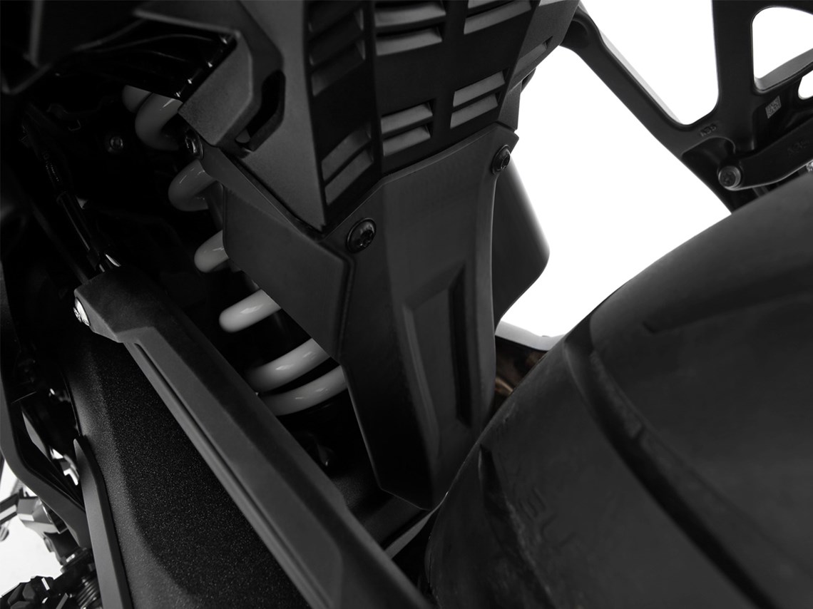 This inner fender protects the shock absorber, the shock absorber mount, the swing arm and the collector. It catches the water spray and drains it away reliably.