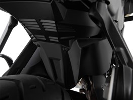 This Wunderlich Inner Mudguard at the same time protects the rider and passenger from spray and road dirt in the area of the feet and lower legs.