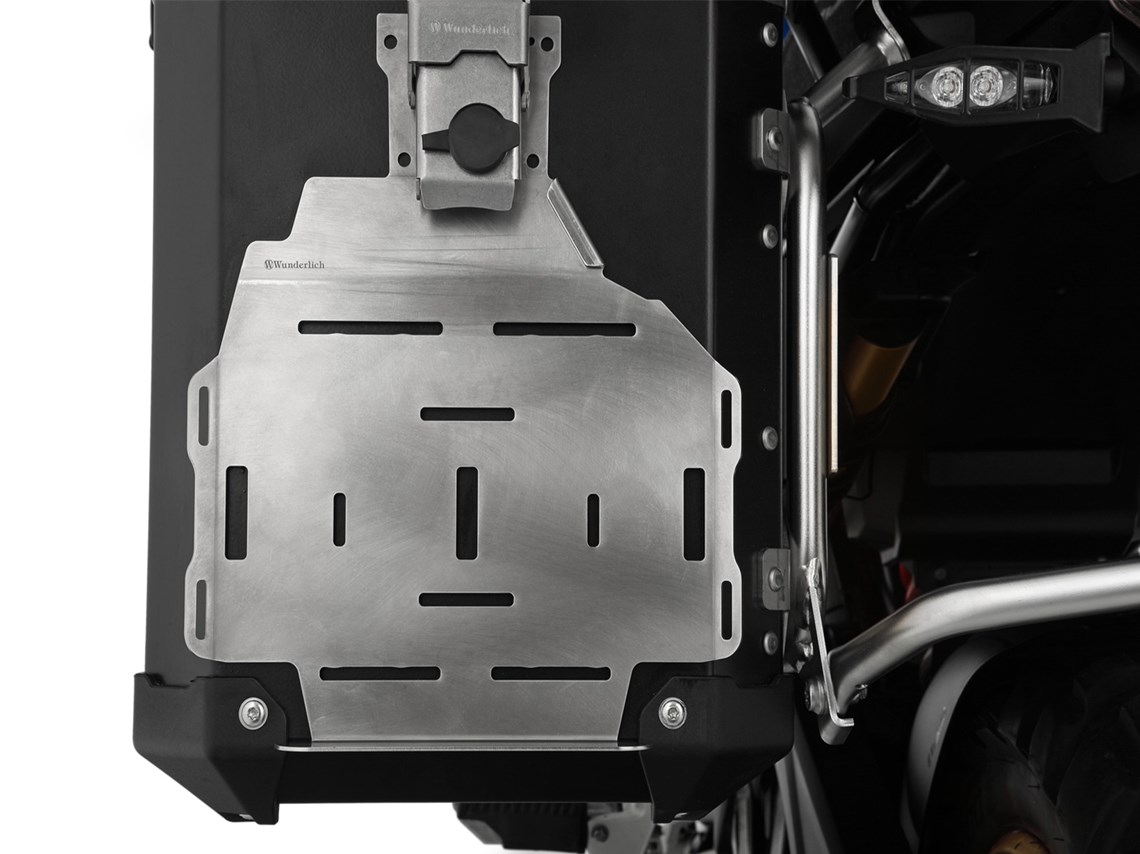 The rack fits our EXTREME cases, our EXTREME top case and the original BMW aluminium cases. It can be mounted on the right and / or left case. The secure attachment is very easy: The rack is attached to the top of the respective case lock permanently and theft-proof at existing points. At the bottom, the rack is securely attached to the case with Velcro. It is also used for damping. It is therefore not necessary to drill holes in the case that could lead to a leak.