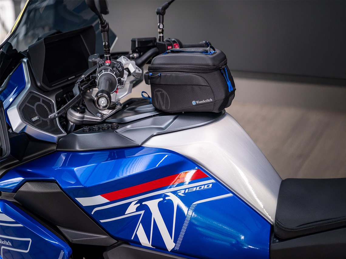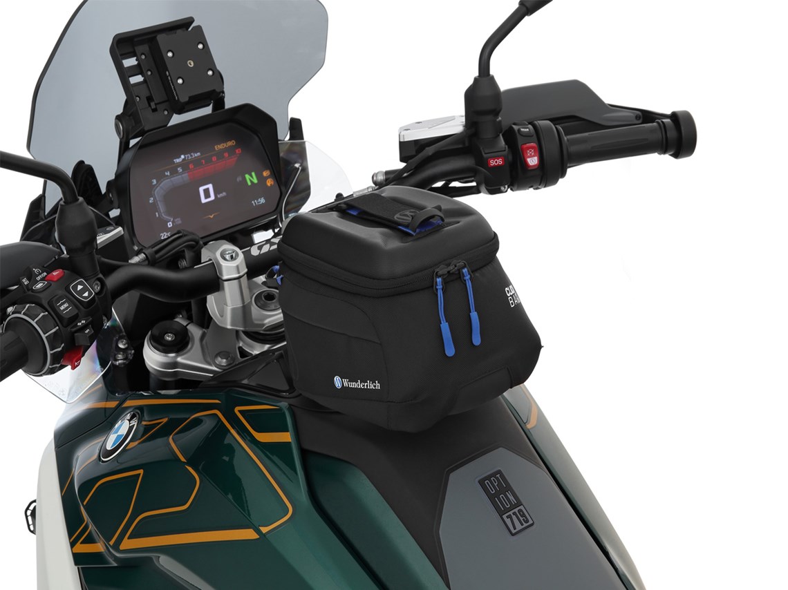 The Wunderlich Click System tank bag (3 litres) can be fitted and removed in seconds and allows easy refuelling.