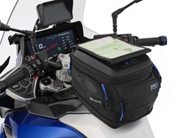 This Click Bag System tank bag offers you remarkably smart handling, because you can attach and detach it in no time at all - just with a click. The tank bags in the Wunderlich CLICK BAG series can be securely attached to the respective model specific tank ring (buy separately)