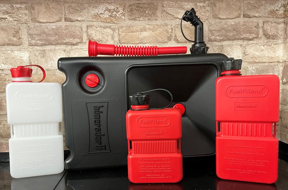 Hünersdorff high quality fuel bottles, oil containers, and no-spill nozzles take the mess - and risk - out of dealing with fluids in the workshop and on the road.