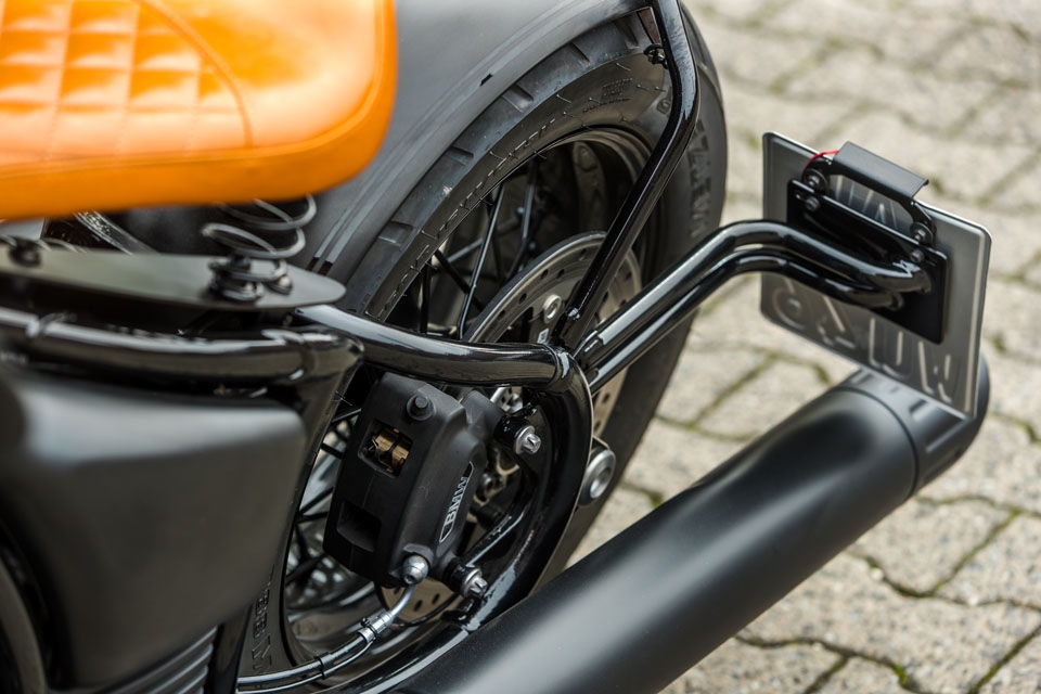 - Wunderlich‘s custom numberplate holder relocates it to the left side and allows space for the clean tail end. The RockBob perfectly integrates with the rear fender and the miniaturised, low-profile 3in1 tail lights.