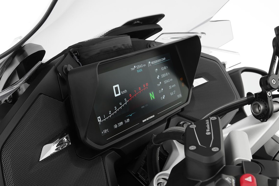 A simple yet clever solution, Wunderlich’s Sun Shade wraps around the TFT display on three sides, helping to shield the shiny surface from the direct sun, without hindering the rider’s view or restricting usage.