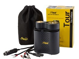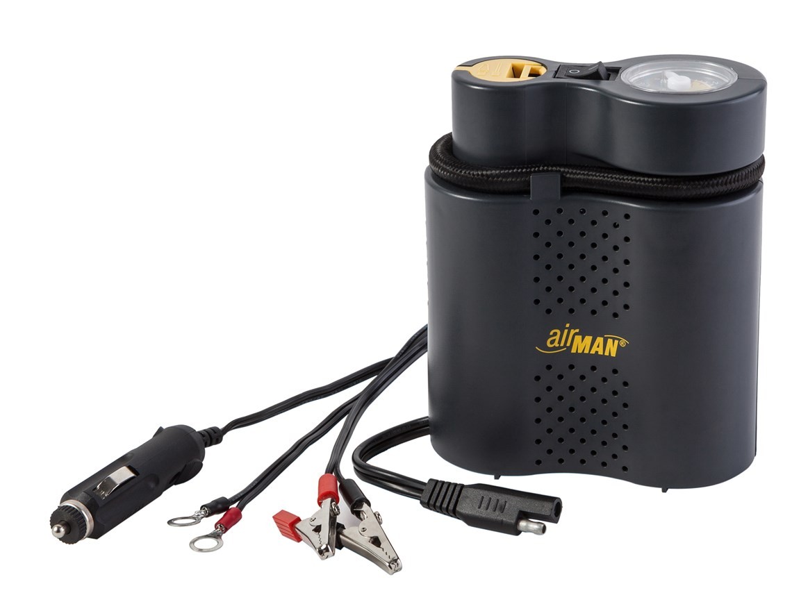 The AirMan Adventure Tour Compressor is the perfect tyre inflator for motorcyclists looking for a small and powerful inflation solution. Small enough to be stored under seats or in a bag, the Tour is supplied in a neat canvas carry bag and only weighs around 800 grams.
