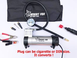 12 V Air Compressor Pump by Desert Fox: small, compact and VERY powerful, this air compressor is tailor made for tough off-road conditions.