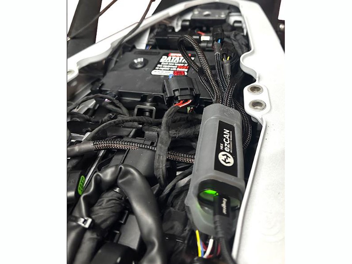 The ezCAN plugs directly into your motorcycle and listens to the CAN-bus.