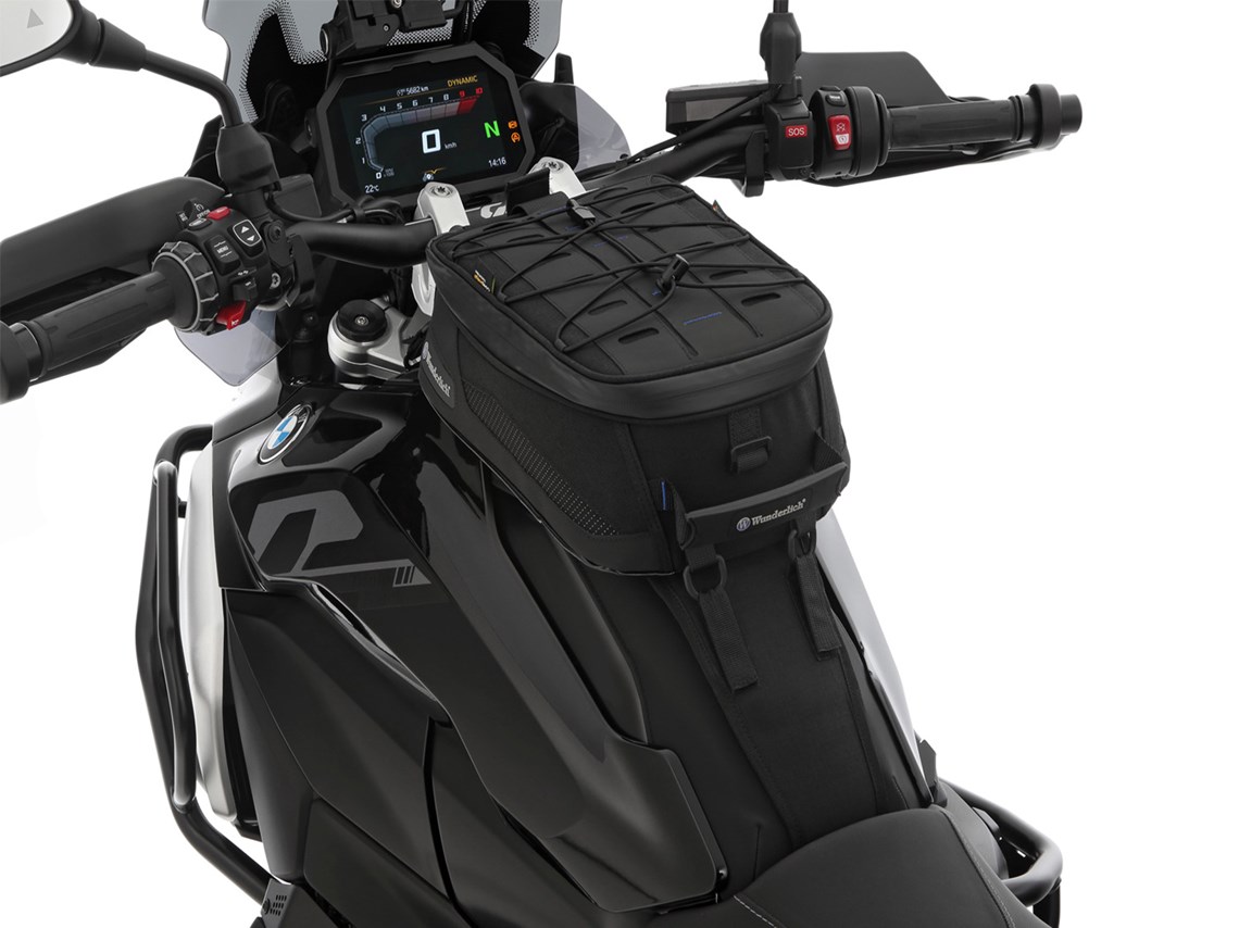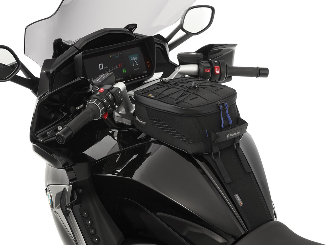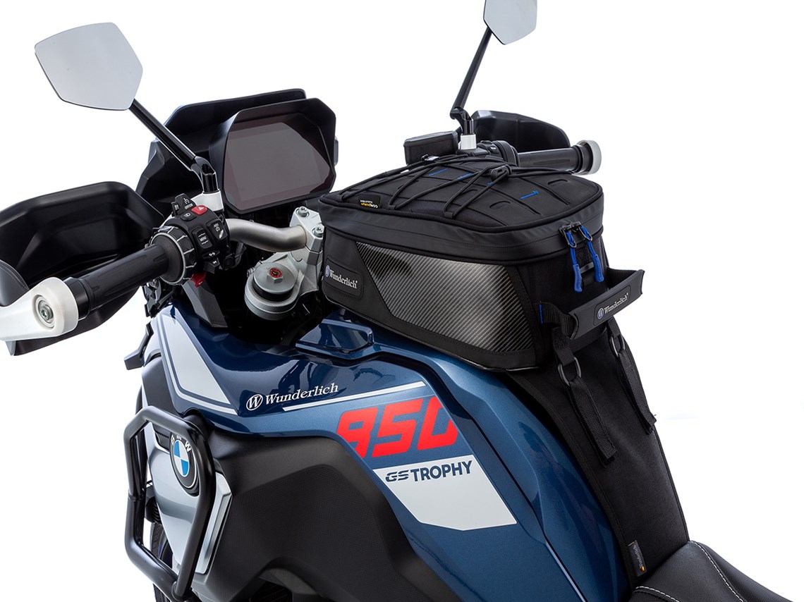 • The system holder (please order model-specific) is attached to the vehicle in just a few steps and securely holds the tank bag via quick-release fasteners, allowing for quick and easy attachment and removal, even with gloves.