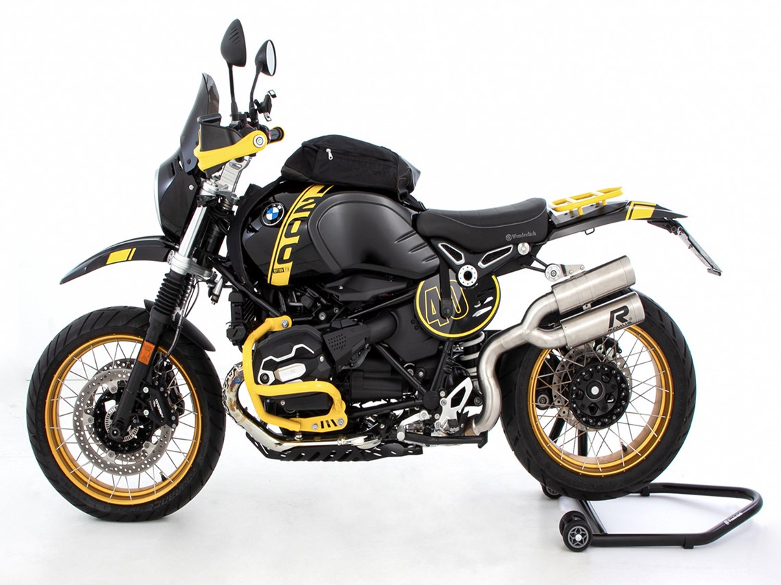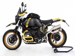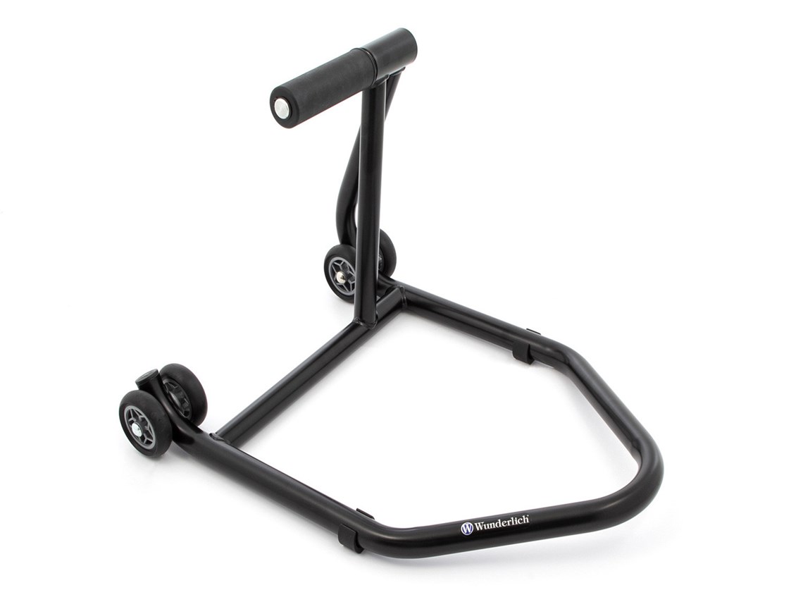 Professional, convenient and well-designed propping device for BMWs without centre stand, ideal for those occasions e.g. maintenance work, when the bike has to be completely stable.