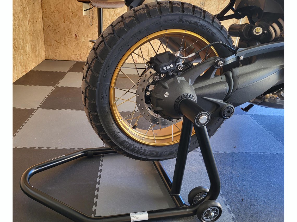 This paddock stand is quick to install and enables a fast and easy rear wheel change.
