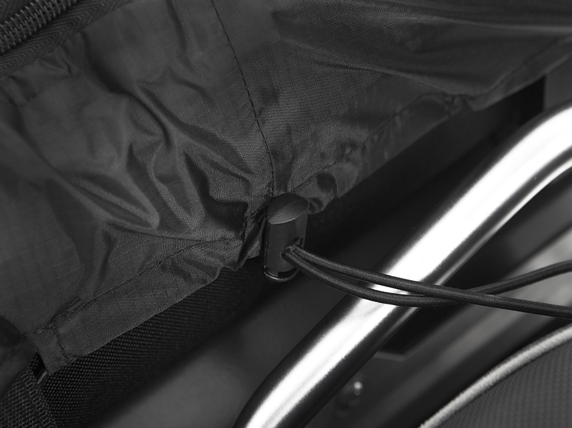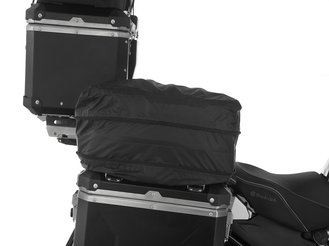 This waterproof and windproof rain cover protects your top case bag and its contents when you ride in bad weather, especially when you ride in the rain. It is made of waterproof ripstop, a particularly tear-resistant (and tear-resistant) nylon fabric with an excellent ratio of low weight to maximum stability. UV-stable, does not age and does not fade. The seams are welded waterproof. It is tailor-made and can be comfortably adjusted in height from 19 to 29 cm to match the top case extension used. The adjustment is made with a circumferential zipper. An elastic drawstring is used for secure fastening. This minimizes the flapping of the cover caused by the wind and the associated noise. The perfect fit also has the advantage that the relative movement between the cover and the top case caused by the flapping and the associated wear and tear is excluded.