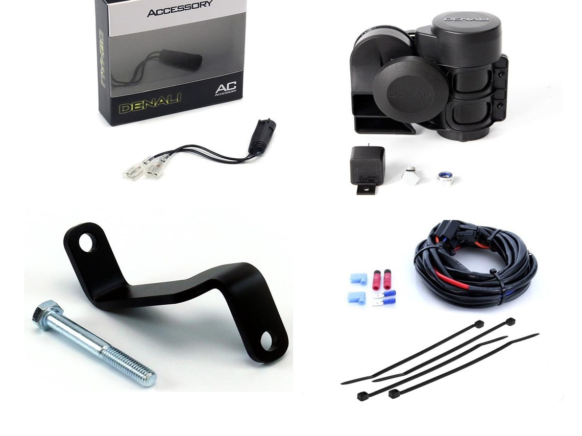 This kit includes everything to add a Denali Sound Bomb to your bike.