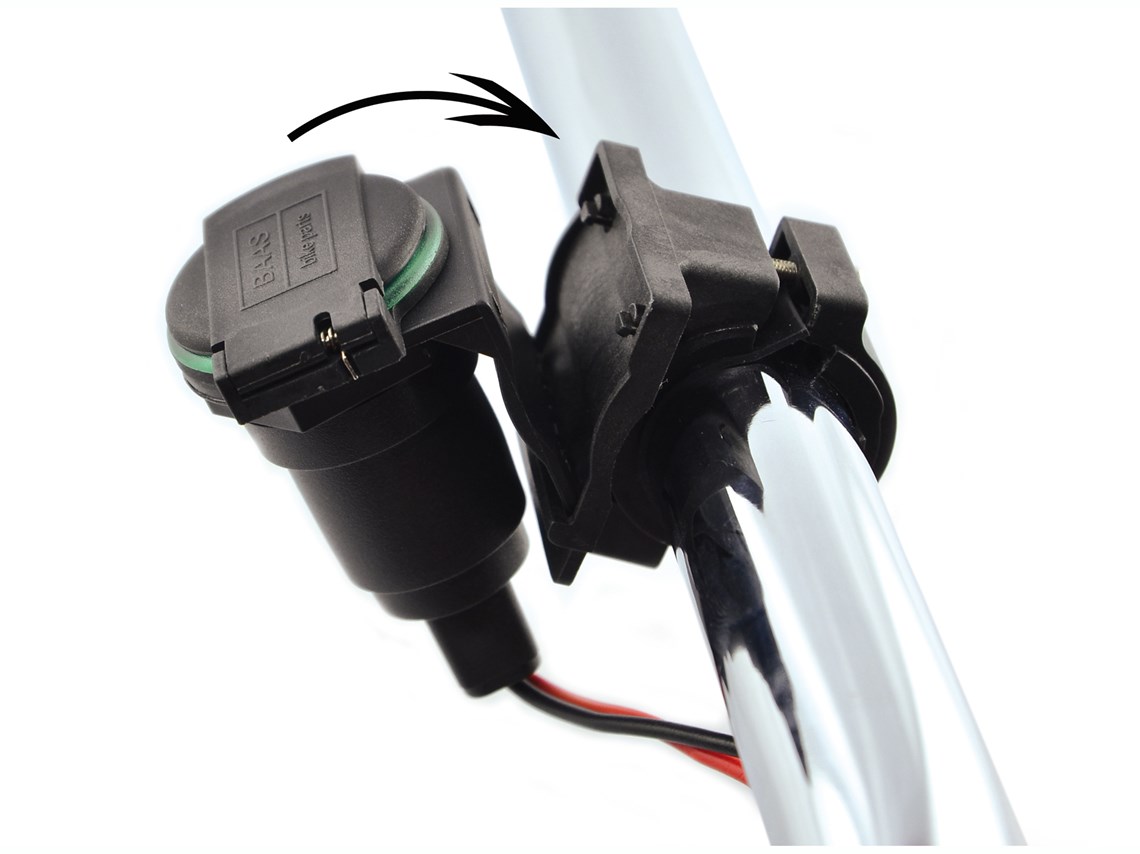 Now you can attach our Cigarette lighter size socket kit (part number BAS-ZA01) to your handlebar or a frame tube.