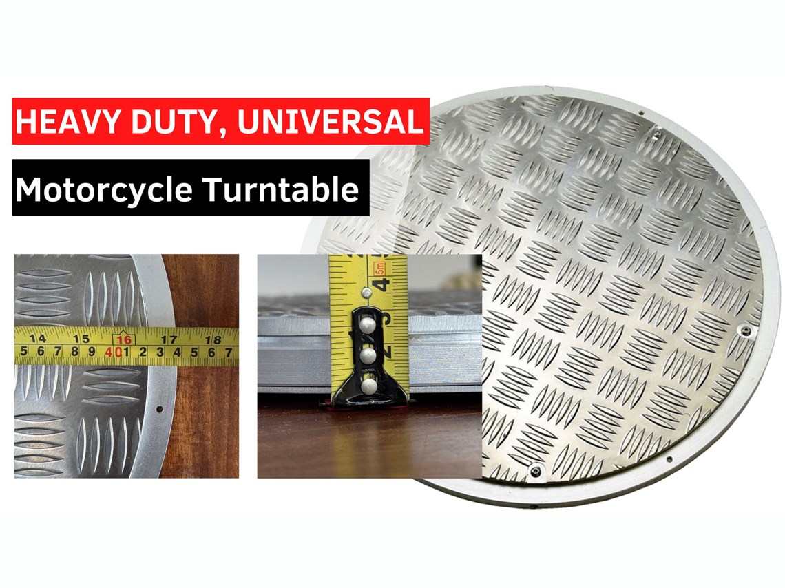 Enables you to rotate your motorcycle up to 360 degrees by placing the centre stand of your bike on the treadplate of the turntable.