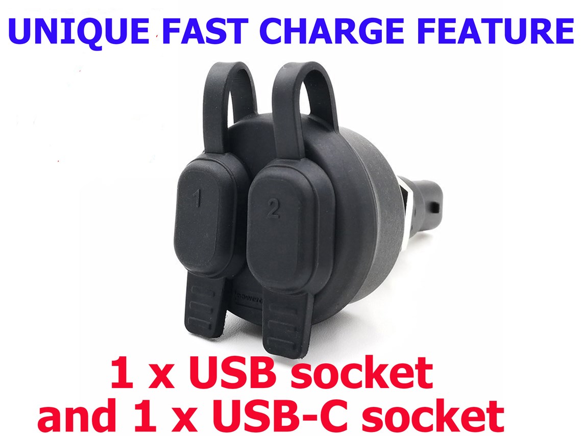 This NEW product fits in place of the original DIN or USB socket and offers Fast Charge and two sockets !