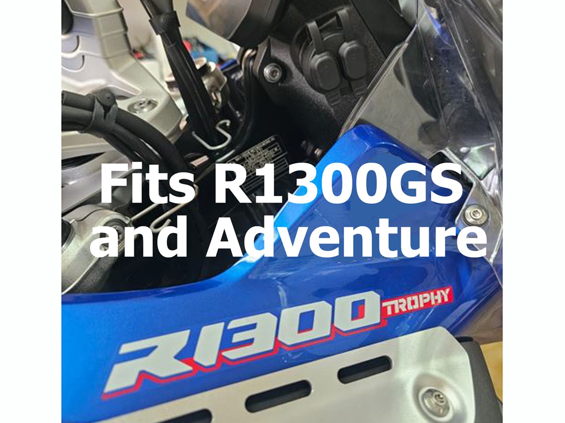 On R1300 Adventure - Remove windshied, then satnav mount bracket, then black plastic cover, then windshield elevator block move aside and access to the DIN socket rear is there