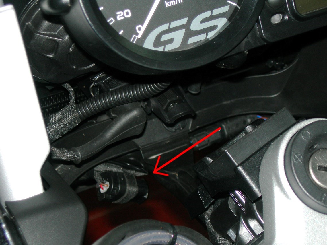 BMW very kindly provide a plug in the harness for you to hard wire your Garmin Zumo or TomTom into. This lead plugs straight into this plug and can then be spliced into the lead supplied with your gps. It can be found under the headstock or by the battery on F800 bikes.