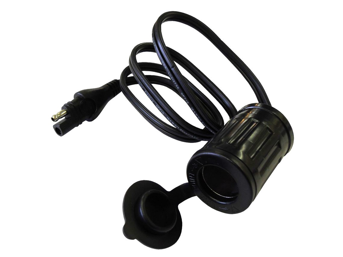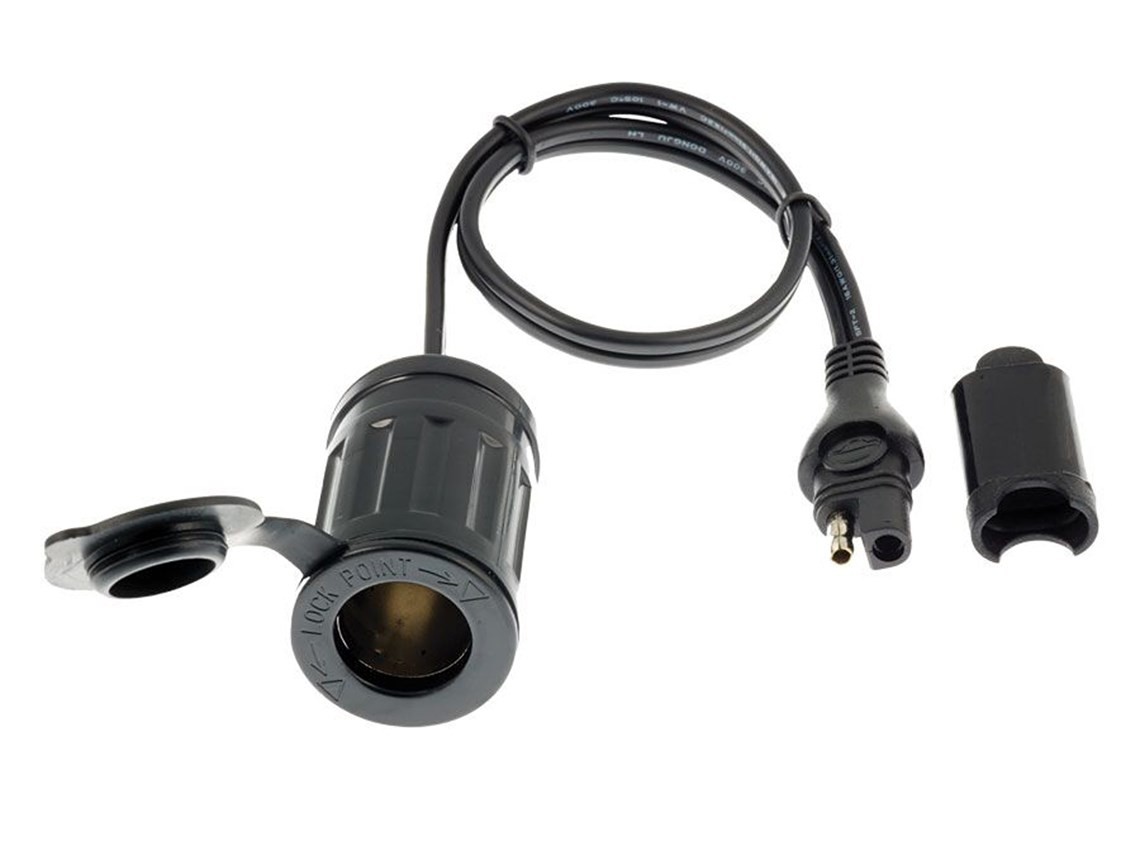 Create a handy charging socket on your motorcycle for any products which use cigarette lighter plugs. Connect any 12V accessory equipped with a cigarette lighter connector directly to your battery using the existing OptiMate lead that is always connected to your battery