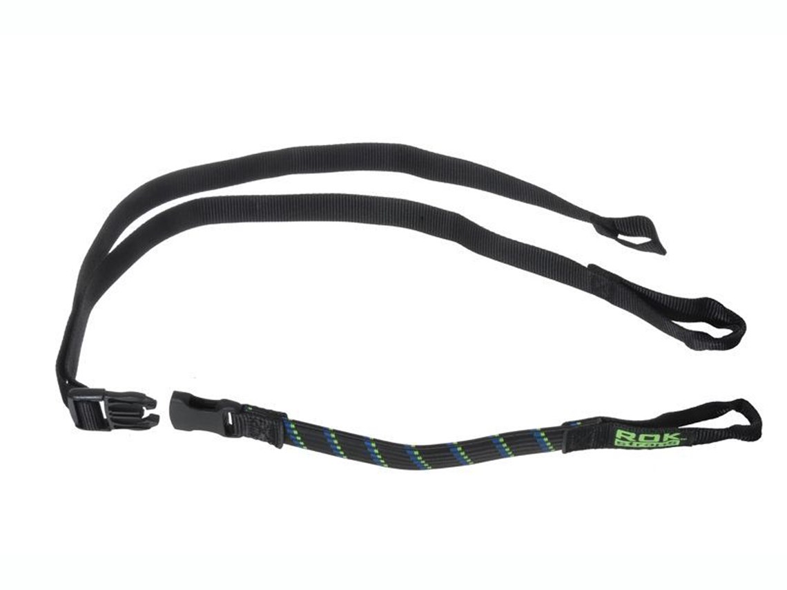 Combines a long length of webbing with a short length of Rokstraps unique flat shock cord. A buckle joins both portions together and allows easy adjustment of strap length. Each extremity of the strap is fitted with a webbing loop that allows each portion to be wrapped around anchoring points in a permanent fashion or simply looped over an anchoring point.