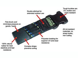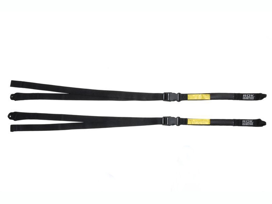 Combines a long length of webbing with a short length of Rokstraps unique flat shock cord. A buckle joins both portions together and allows easy adjustment of strap length. Each extremity of the strap is fitted with a webbing loop that allows each portion to be wrapped around anchoring points in a permanent fashion or simply looped over an anchoring point.
