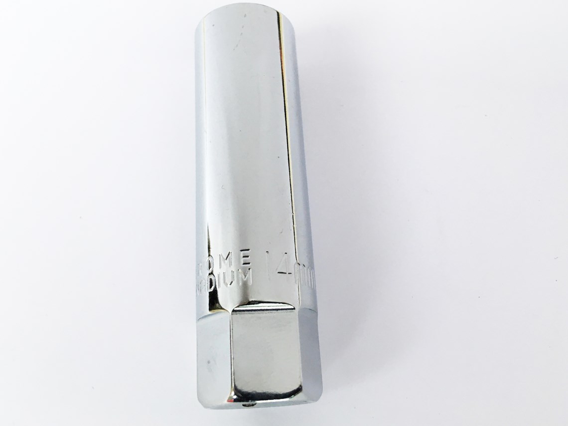 Spark plug removal tool 14mm with built in rubber plug holder.