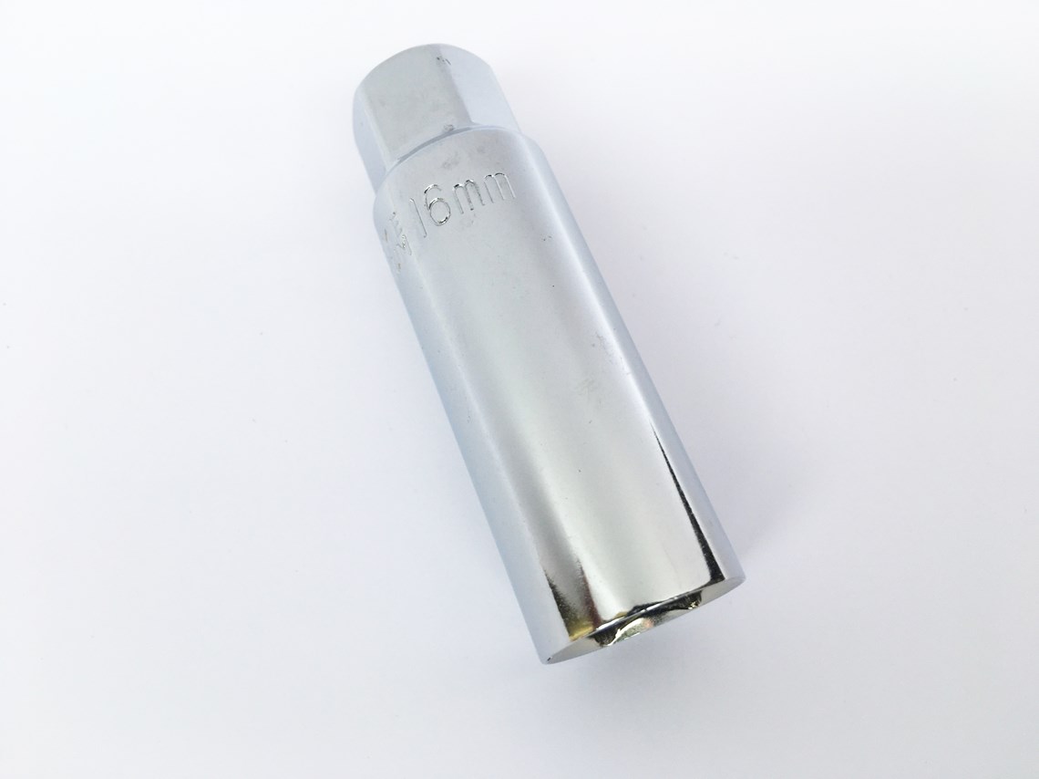 Spark plug removal tool 16mm with built in rubber plug holder.